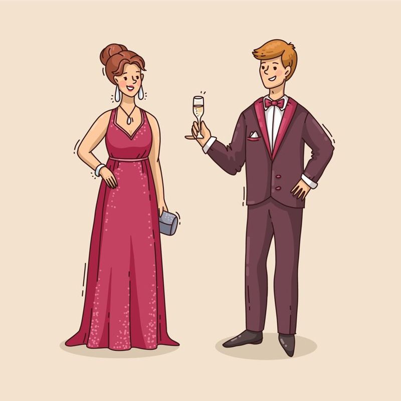 Mulheres: Vestidos longos, modelo midi, macacões ou calça de alfaiataria. Evitem cores como, branco, off white e vestidos muito curtos.